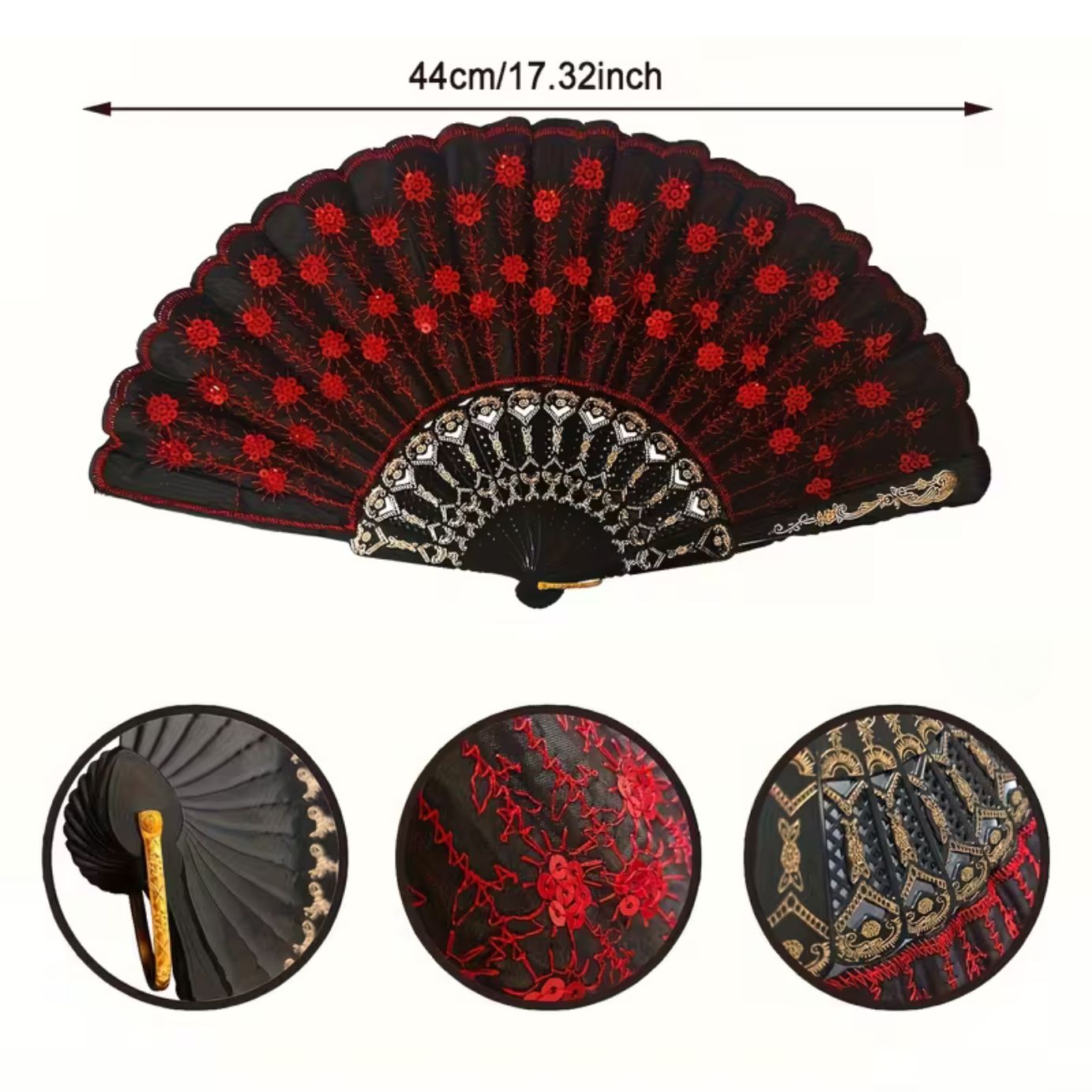 Abanico Plegable y Pinza Flamenca con Rosa